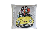 Cuscino Family Lupin arredo dalla forma quadrata con lavorazione vintage raffigurante l’intera banda con Jiegen alla guida, Goemon, Lupin e Fujiko compiacenti per l’ultimo colpo andato a buon fine; l’interno presenta una imbottitura in mollapiuma fatta in piuma fiocco siliconato vergine ed il tutto rivestito in Soft Velvet.