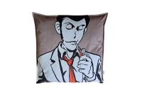 Cuscino Lupin arredo con finitura pizzicata dalla forma quadrata caratterizzato da un mezzobusto di un compiaciuto Lupin; l’interno presenta una imbottitura in mollapiuma fatta in piuma fiocco siliconato vergine ed il tutto rivestito in Soft Velvet.