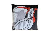 Cuscino Lupin in fuga arredo finitura vintage dalla forma quadrata caratterizzato da un immagine dinamica di Lupin; l’interno presenta una imbottitura in mollapiuma fatta in piuma fiocco siliconato vergine ed il tutto rivestito in Soft Velvet.