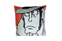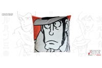Cuscino Zenigata arredo dalla forma quadrata con lavorazione vintage raffigurante il diligente ispettore Zenigata; la imbottitura interna è in mollapiuma composta da fiocco siliconato vergine e piuma, il tutto tappezzato in Soft Velvet.